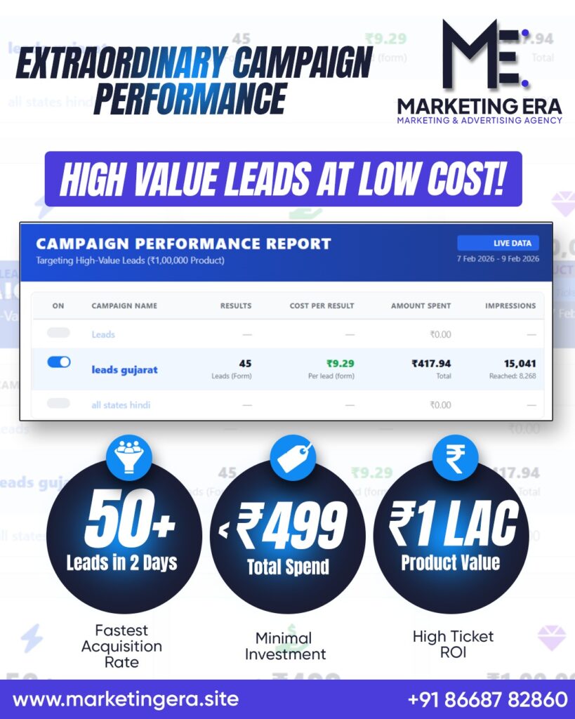 🚀 Extraordinary Campaign Performance: 50 Leads with ₹499 Ad Spend for a ₹1 Lakh Product